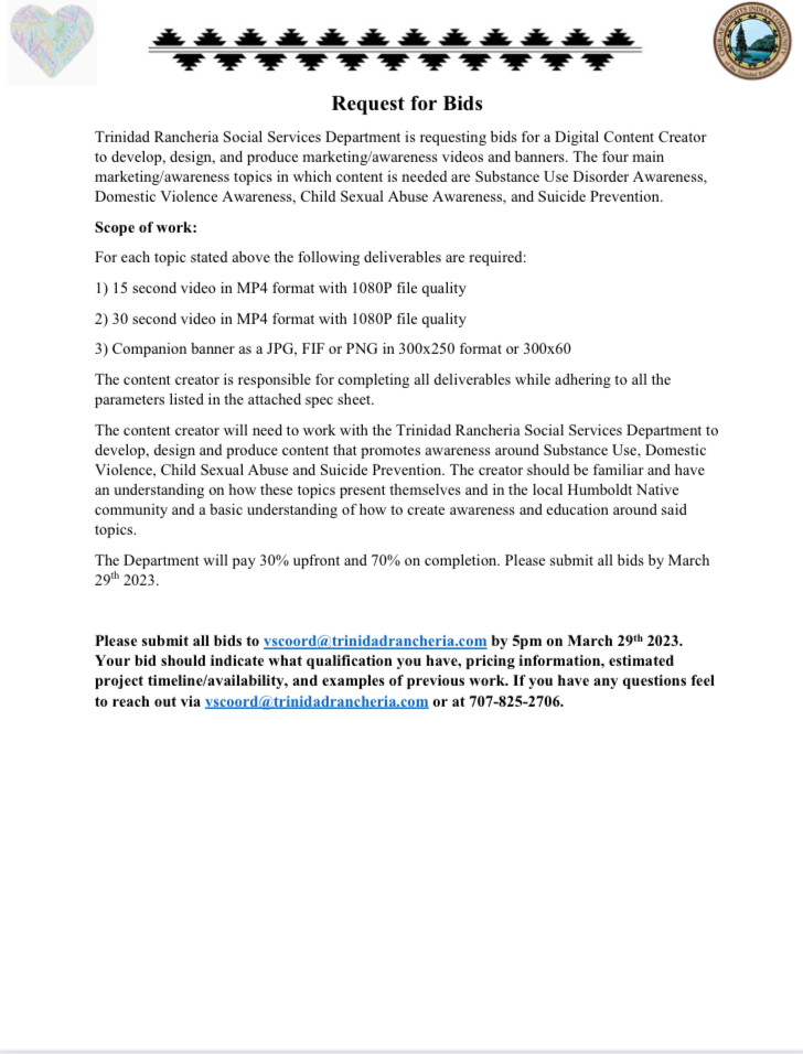 Eligibility: Must be a Trinidad Rancheria Tribal Member